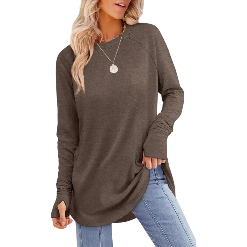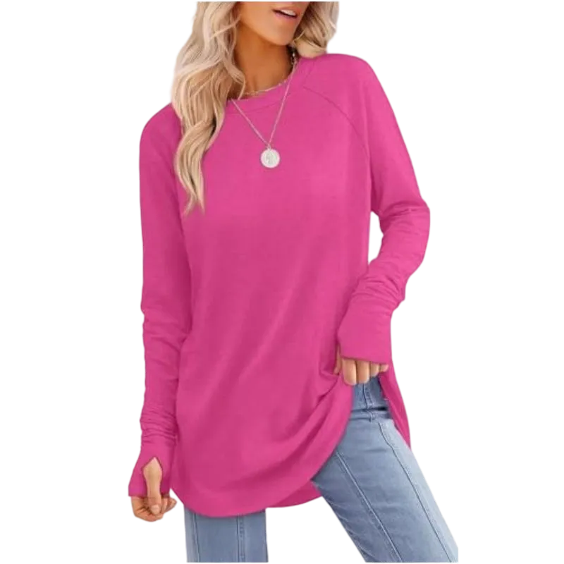 🌈Women's Versatile Tunic Top The Ultimate Legging Partner - Now with Hidden Thumbholes! 🌈 OCCASION ADAPTABILITY🏃‍♀️ Gym to Brunch: Puffer vest + biker shorts👩‍💼 Office: Blazer + tailored trousers✈️ Travel: Joggers + compression socks✨ Fit: Relaxed → usual size; Fitted → size down🎯 DESIGN INTELLIGENCE✔ Forward Shoulder Seam: No armpit bunch✔ Thumbhole Cuffs: Secure sleeves (yoga)✔ Curved Hem: +2" back (full coverage)✔ Side Splits: Free strideThumbhole design, round neckline and curved hem combine fashion and leisure, making it your first choice for everyday wear. Add to Cart Now