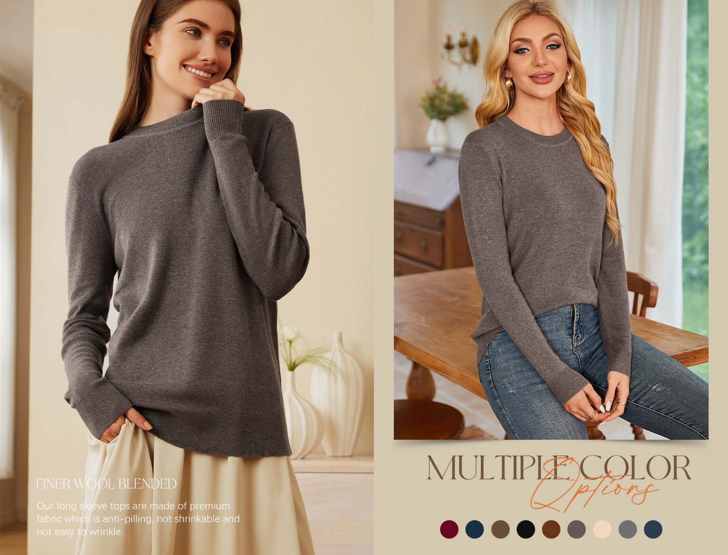 • 💥Clearance Sale⏰ Women's Wool Blend Crew Neck Pullover Sweater🔥