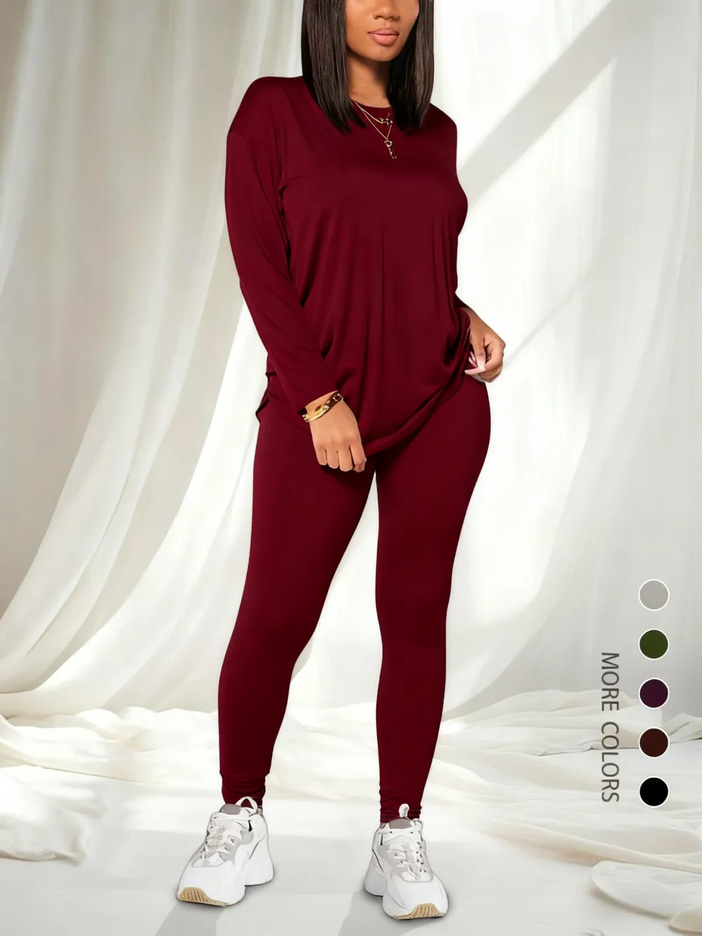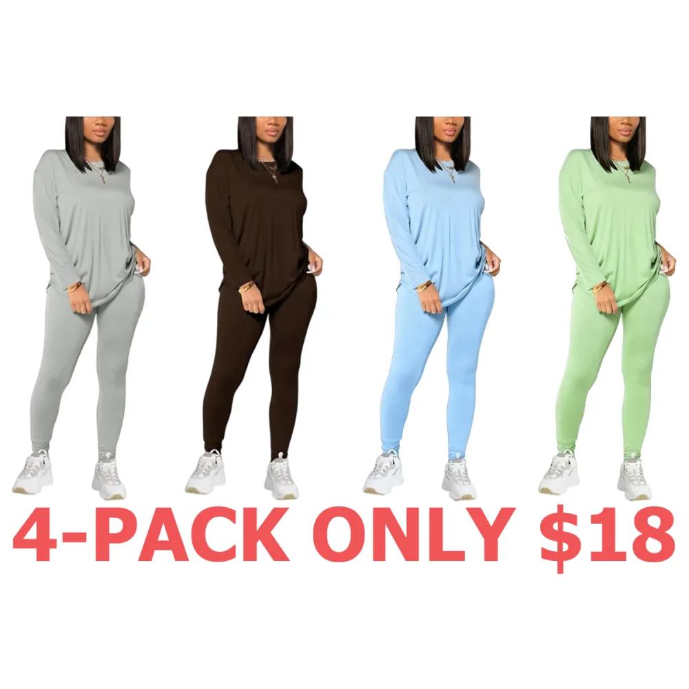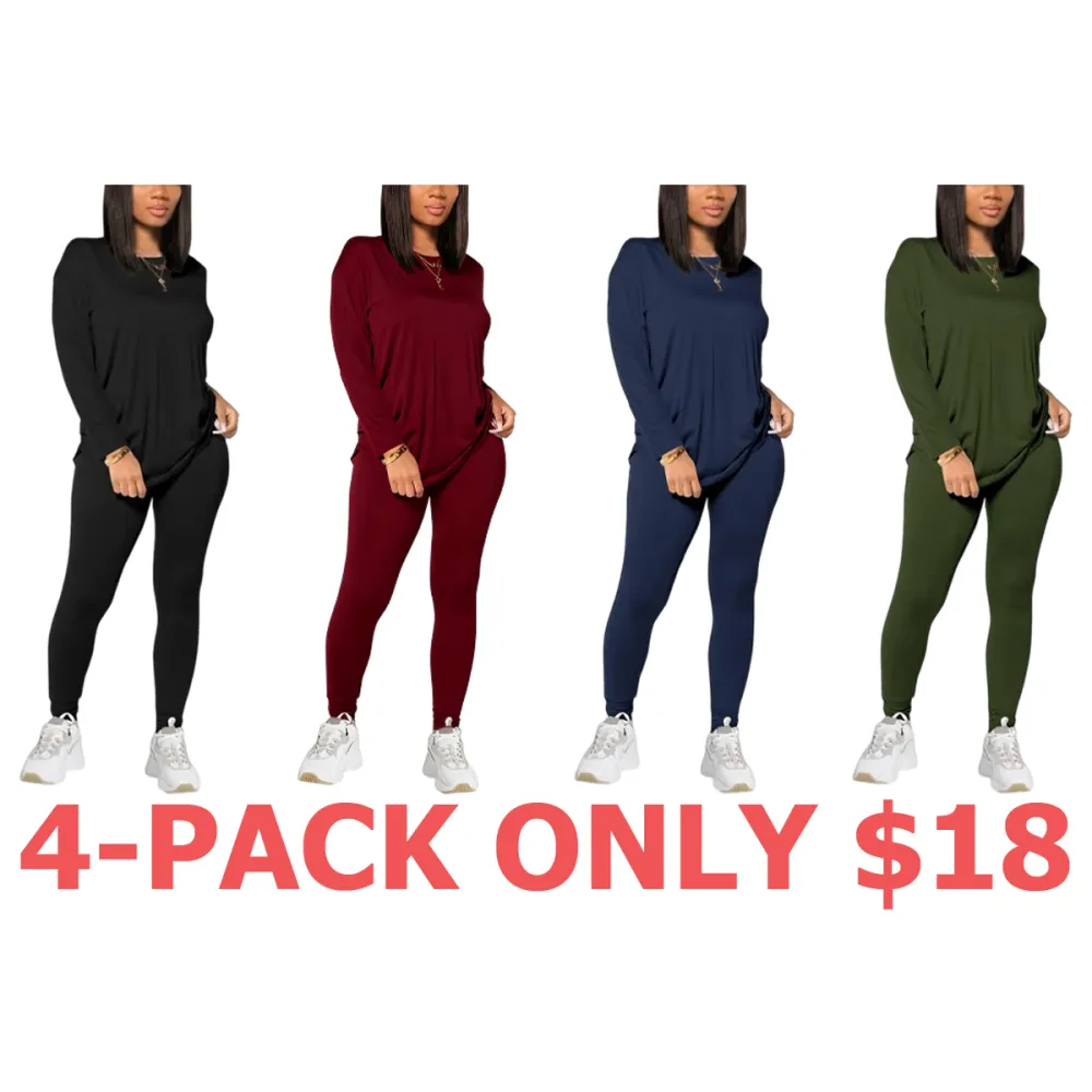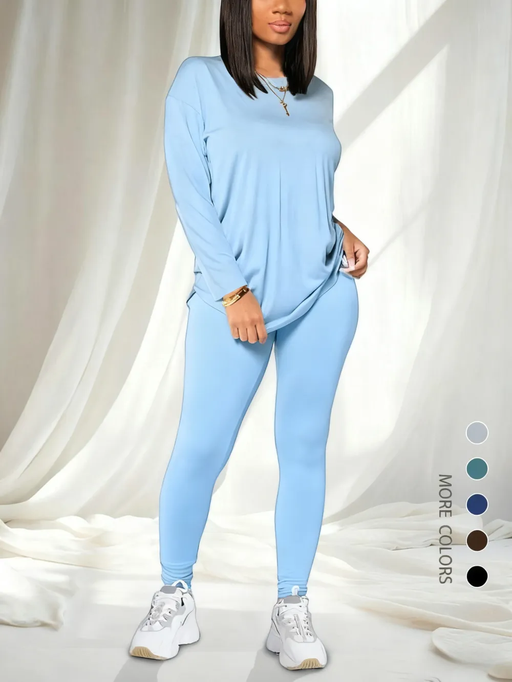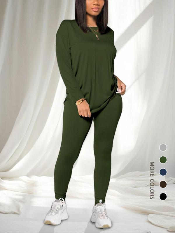 • Women's Solid Drop Shoulder Tee & Elastic Waist Skinny Pants Two-piece Set